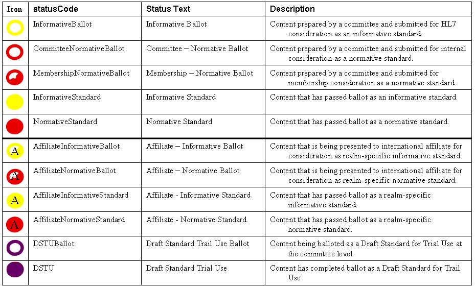 Within the documents, you may find several icons that are designed or colored in such a way as to introduce the status of that particular item. Most commonly, main headings will have an icon for their ballot status. By hovering over the icons, you will find a descriptive term to better understand what this icon means. Here is a list of the ballot status icons used in these documents. |
