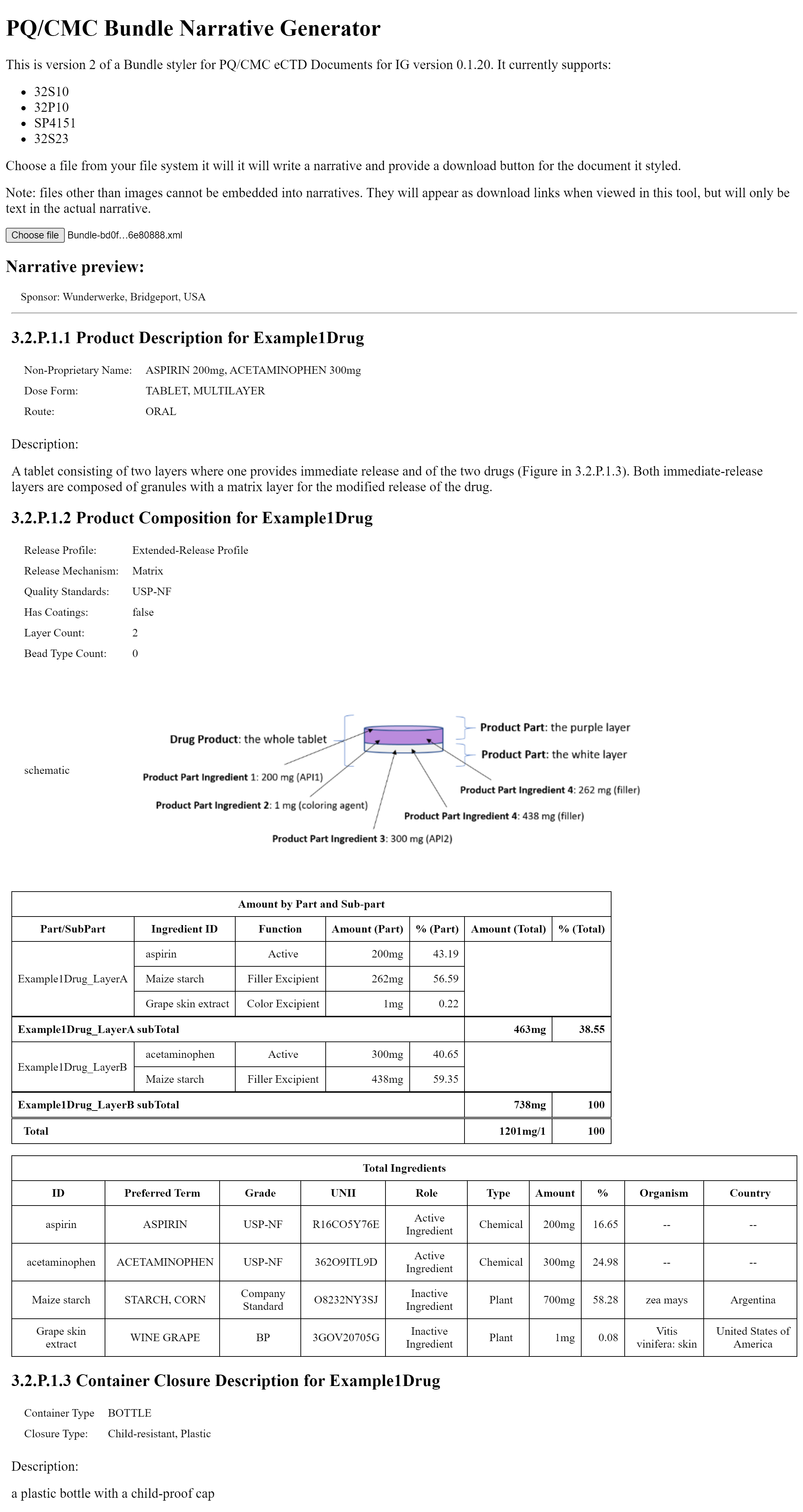 This image demonstrates a multilayer tablet displayed with narrative inserted in the composition text element. It has two parts. The XML can be found on the Artifacts page and does not contain the narrative in the image, rather it contains the narrative generated for all examples by the IG publisher program. It is on the artifacts page and in the Bundle profile. bd0f0a7a-27ea-4884-801d-bd0546e80888