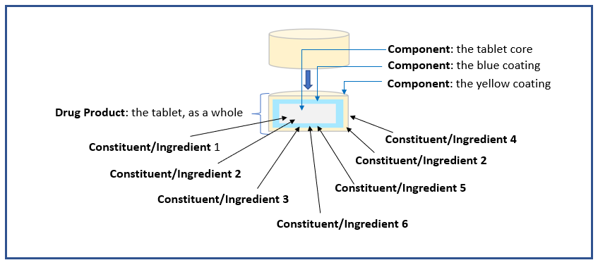 The additional example illustrations below of drug products are included as an aid to understanding the terms or semantics in the context of the PQ/CMC IG.